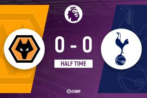 半场结束,狼队0-0热刺。