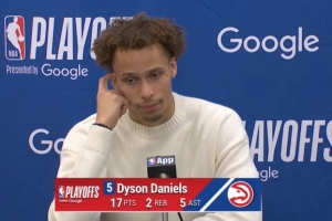 丹尼尔斯:我就是打得更有侵略性,很明显,我很多时候在罚球线区域活动,从比赛开始就尝试冲击篮筐,攻击布伦森。说实话,我在这个季后赛进攻端一直都不好,所以今晚能有所发挥,希望能延续到第六场。