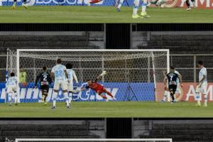 上半场开场八分钟,格雷米奥获得点球,卡洛斯·维尼修斯第一次主罚罚丢,裁判判罚门将提前移动,示意重罚。之后卡洛斯·维尼修斯第二次主罚依旧罚丢,裁判再次判罚门将提前移动,卡洛斯·维尼修斯因此在六分钟内获得第三次点球机会,但他依然没有命中。