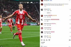 凯恩也在赛后通过社媒晒出自己的庆祝照,并配文:“进军柏林!!今晚客场作战,表现出色,成功晋级决赛。我们会继续努力!!🙌”