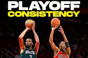 据统计,这是杜兰特生涯第171场季后赛,全部得分上双,历史第二位生涯所有季后赛得分均上双的球员,第一位是乔丹的179场。